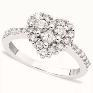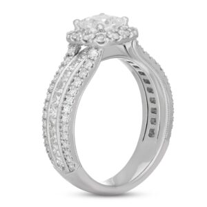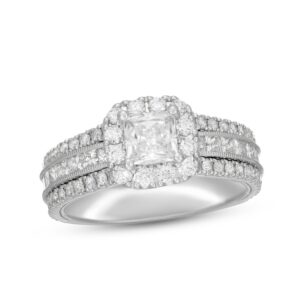 When the question is "Will you spend the rest of your life with me?" ensure a positive response with this exceptional diamond engagement ring. At the center of this 14K gold sparkler, a quartet of princess-cut diamonds in an invisible setting shine with a frame of smaller round accent diamonds. Adorning the shank, brilliant channel-set baguette-cut diamonds are bordered top and bottom with glittering round diamonds, creating a look that cannot be denied. Boasting an amazing 3 cts. of diamonds and a bright polished finish, her reply is certain to be an enthusiastic "Yes!"