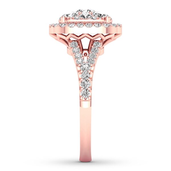 For an everlasting love, never-ending sparkle. Awash in round diamonds, this extraordinary engagement ring is crafted of 14K rose gold. The ring has a total diamond weight of 3/4 carat.