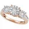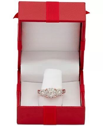 Make her wishes come true with this romantic round-shape three stone halo diamond engagement ring (3/4 ct. t.w.) beautifully designed in 14k gold, white gold or rose gold.