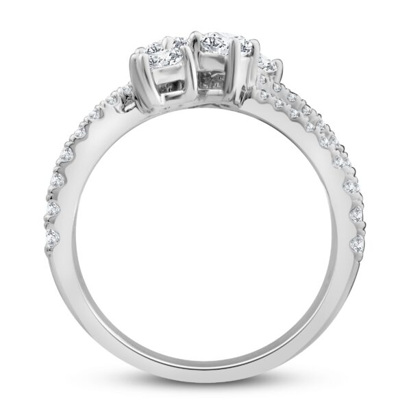 This enchanting diamond ring collection features five distinctively-shaped diamonds, symbolic of everything she means to you. Each diamond shape has a different meaning, from integrity and wisdom, to confidence, totality, and elegance. The beautiful 10K white gold ring features an oval-cut, emerald-cut, pear-shaped, round-cut, and princess-cut diamond at the center, while ribbons of brilliant round-cut diamonds flow outward. The gorgeous ring has a total diamond weight of 1 1/2 carats.