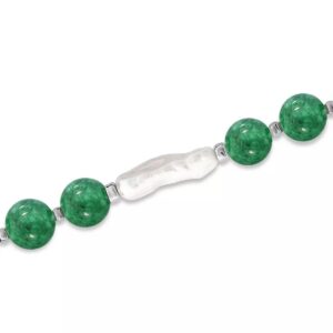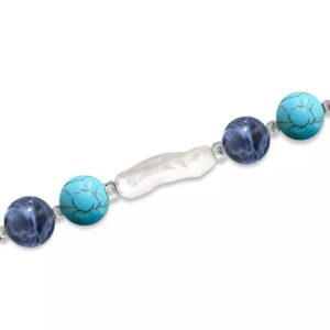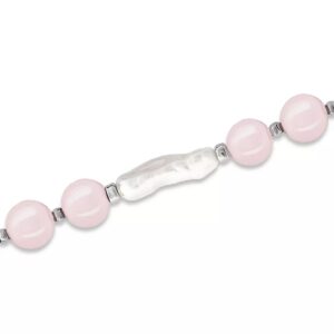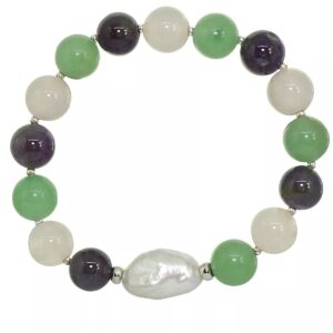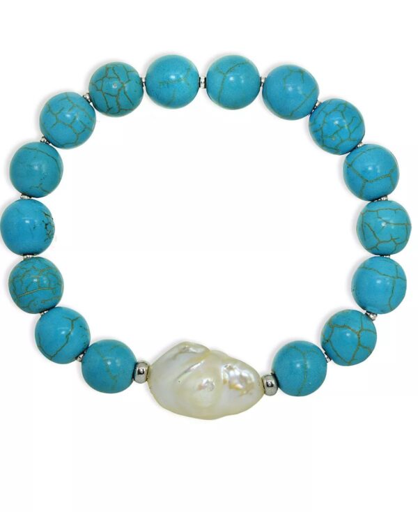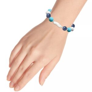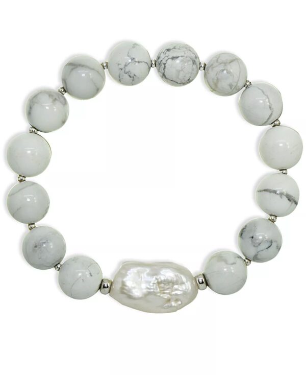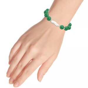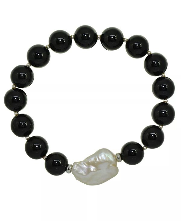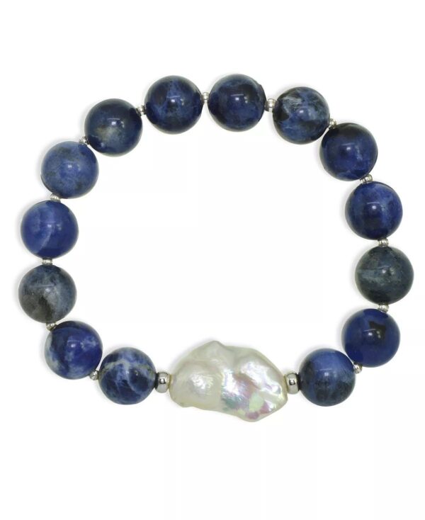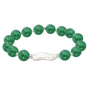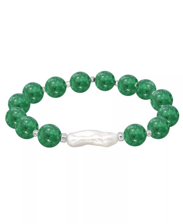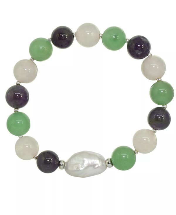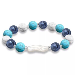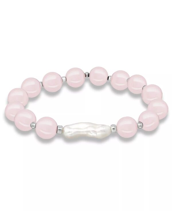 Add soft elegance to your look with this genuine stone biwa pearl stretch bracelet. This smooth bead bracelet gets a boost from a freshwater pearl center and silver plate accents.