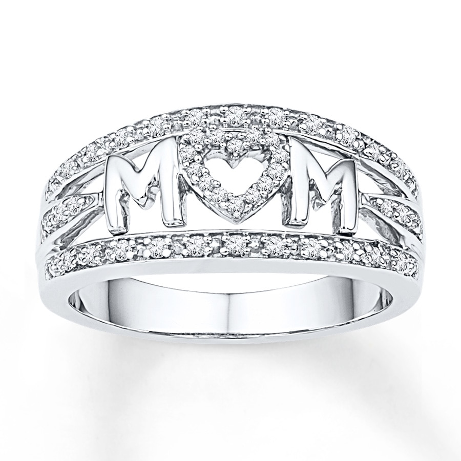 Mom Ring 1/5 ct tw Diamonds Sterling Silver